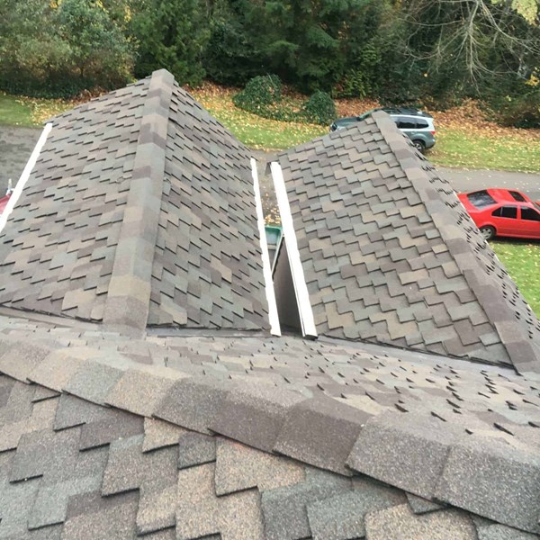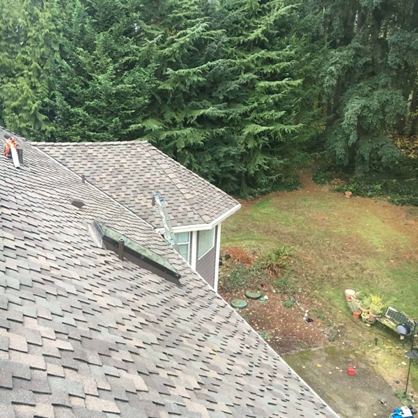 This beautiful roof was installed last week in Federal Way. Our customer had a previous cedar shake roof that he wanted to replace with architectural composite shingles. He chose to have a CertainTeed Presidential TL roof installed in the color Autumn Blend. The composite roof turned out great and our customer was thrilled with the results.
