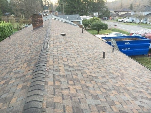 Earlier today we finished installing a new roof on this home in Lake Stevens. The homeowner knew that her roof was getting up there in age and wanted to replace it before anything bad happened. After looking at the different composite roofing shingle options we offer she chose have us install CertainTeed Landmark Pro shingles in Max Def Heather Blend.