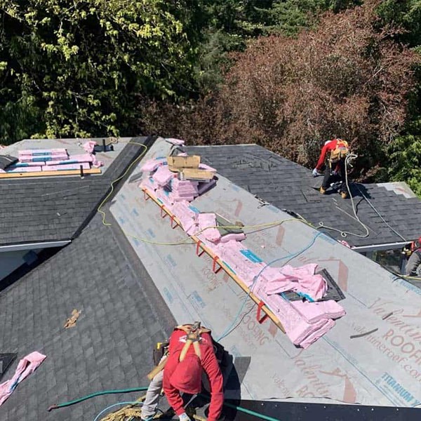 The project manager worked directly with the Monson family. Project Managers provide timelines, delivery information, and other logistics before our project begins. This project took four days to complete. Our project manager, along with the site foreman kept the family apprised of project progress along the way. Our professional roofing crew started the project by tearing off the old material. Followed by a complete inspection of the entire roof deck. Unfortunately, signs of rot and water damage are not always readily visible during the initial assessment. Once the crew completed tear-off and the inspection of the roof deck, they set to work installing the new roofing system. The new system followed the project plan specifically designed for the Monson home.