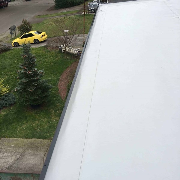 Earlier this month we installed a new PVC roof on this home in Shoreline. Our customer previously had a torch down roof that he wanted to change to something with a longer lifespan. After meeting with our estimator he decided to change to a PVC roof in light gray.