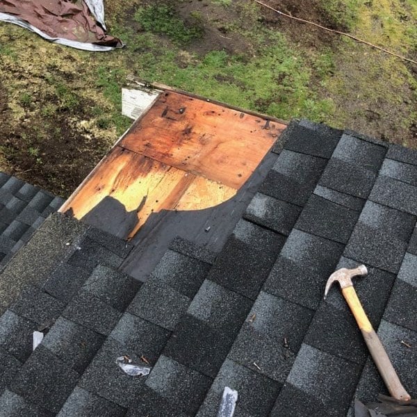 When the Spring storms rage it can cause damage to your roof. From simple roof debris clean up to roof repairs from falling branches, blown off shingles and more, Valentine Roofing has you covered. Recently, our customer had a tree branch fall on the corner of their roof damaging shingles and underlayment exposing the roof deck below. Our roof repair technicians were able to repair the area and feather in new shingles for a quick roof repair that put the customer's mind back at ease. Now his roof is ready for the next round of weather. Don't put roof repairs off, have them looked at today before they become a bigger problem.