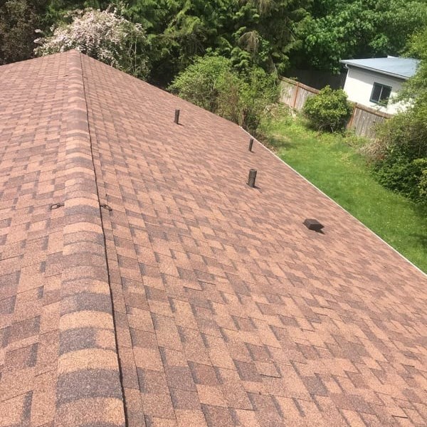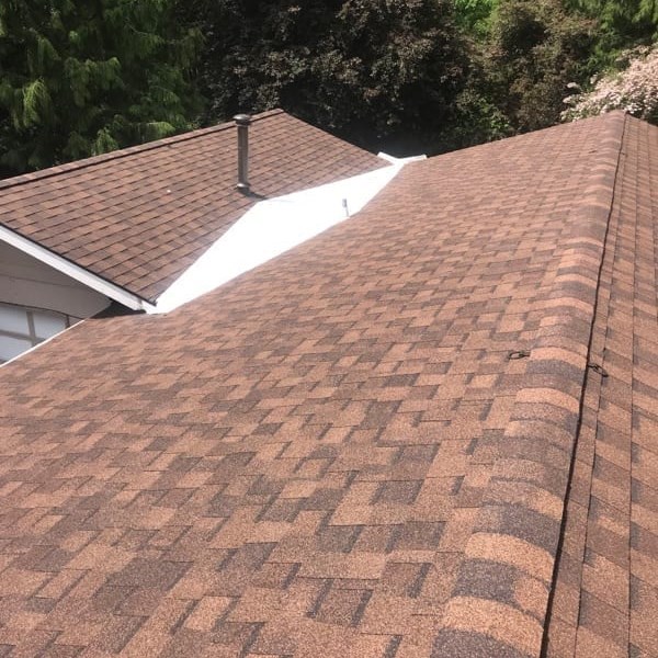 We recently installed a beautiful new roof for our customer in Renton. There was some active leaking on her roof so we took a look to assess the problem and it turned out she had a dead valley on her roof. A dead valley is created when two or more slopes meet, or when a roof slope meets a wall where water can not easily run off the roof. These areas are very low-sloped and sometimes completely flat. This typically results in ponding because the water has nowhere to flow. As water sits it can find weak areas on the roof and penetrate into the attic and eventually create a leak. The best way to treat a dead valley is by applying a PVC membrane to the area where the valley terminates. PVC is a long-lasting material that will withstand ponding better and longer than any composition shingle.