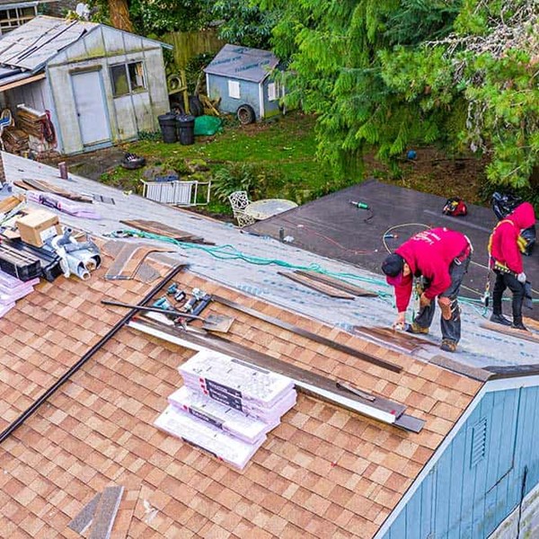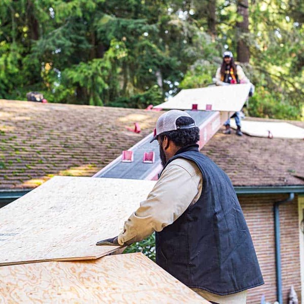 - JOB NOTES: New CDX plywood was installed over the existing shiplap. During the install, the crew leader was able to reinforce the woodshed roof for added durability. Duration shingles and PVC were installed on the home and new Duration shingles were installed on the shed and playhouse. New fascia and gutters were installed on the home.