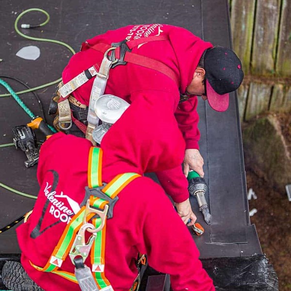 In February of 2020 work began on the Vander Ploeg home. The roof on their home was installed by Bill 34 years ago but had recently started to fail and the gutters, at over 20 years old, were leaking. Valentine Roofing removed the old roofing material and gutters and installed a new roofing system complete with Titanium X30 underlayment, Duration shingles, PVC single-ply membrane on the flat roof section, and seamless aluminum 5K gutters. The crew went above and beyond completely overhauling the woodshed roof as well as the old playhouse giving it new life for future generations of play.