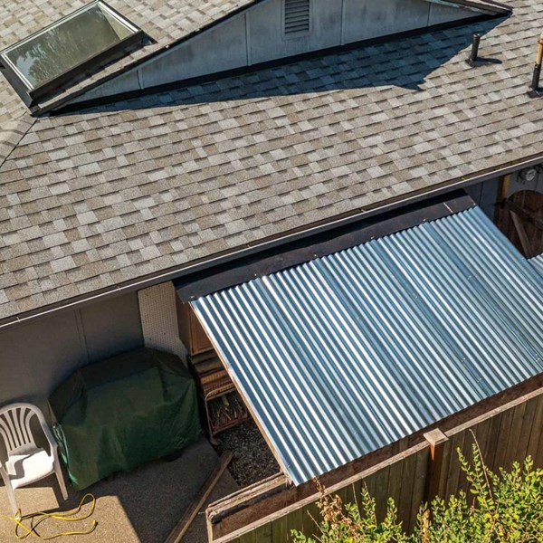 - PROJECT NOTES: Wood shed reroofed with corrugated metal. New Drywall installed in kitchen where leak damage occurred.