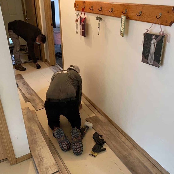 - JOB NOTES: Roof took 3 days to complete and included repairs to several areas where leaking was previously present. The floors took 3 days to install in her living areas and hallway. HVAC was custom fabricated on-site to connect Holly’s new system with her existing mechanical. The new door, took less than one day to install, providing upgraded security for Holly.