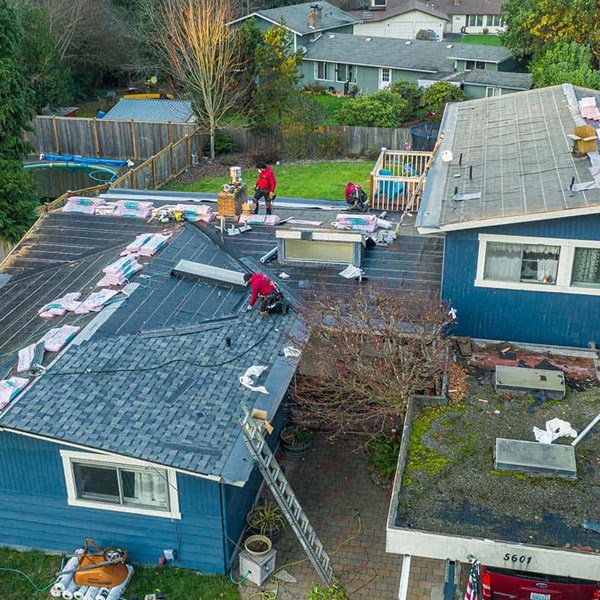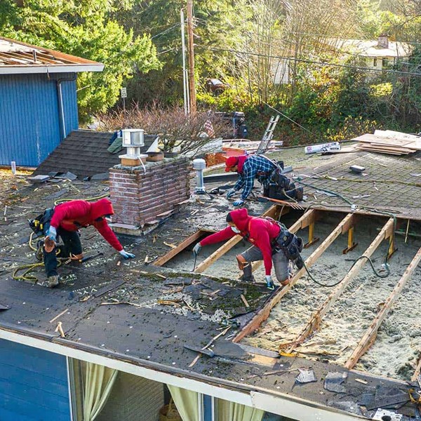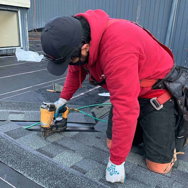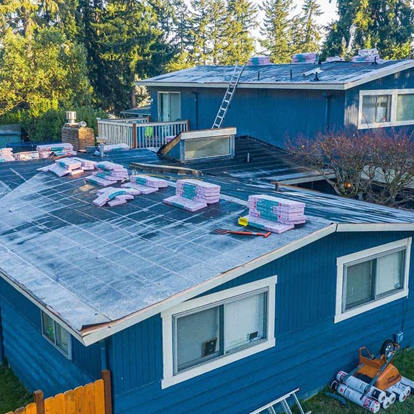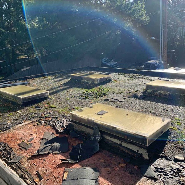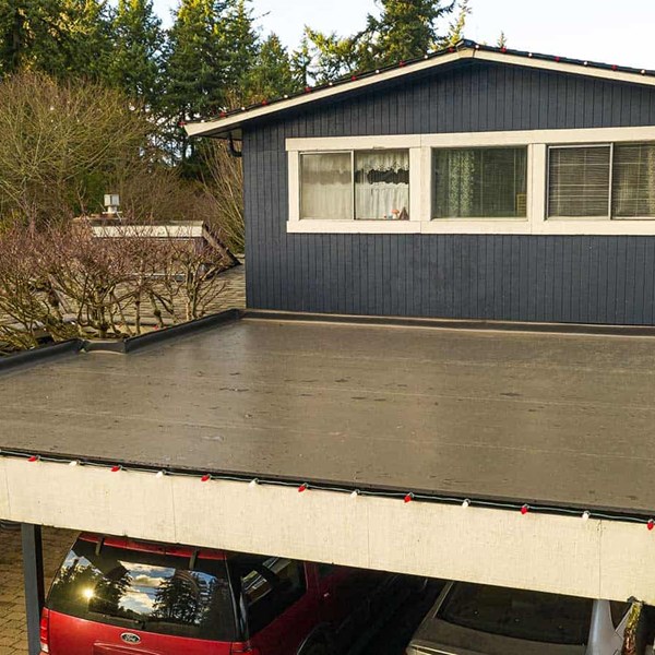 In December of 2020, we completed work on the low slope roof that showed signs of leaking. Once the old shingles were removed it became clear that the previous roof would need a complete resheet. After removing the plywood, the Valentine Roofing crew found that the insulation between the rafters was blocking the airflow from the intake on the upper roof, resulting in moisture buildup. The crew set to work correcting the ventilation issues before installing the new roofing system complete with CDX plywood. The low slope roof required ice and water shield as standard installation, a great underlayment that will protect from future leaks, a common issue with low slope roofs. Owens Corning Duration Flex® shingles were chosen for the project because of the patented SBS technology that ensures a superior cold weather installation. Other shingles can become brittle in cold weather, tearing, and breaking during install. Once the new roof was completed the crew set to work on the carport, repairing the damaged corner, resloping the carport roof deck and installing a new drainage system that carries water away from the walkways. The new PVC membrane will now provide lasting protection for every season. The project was completed just in time for the holidays, allowing the family to focus on the spirit and peace of the season. Owens Corning and Stoneway Roofing supply generously donated all needed roofing materials. ABC Supply donated their delivery service for the shingles.
