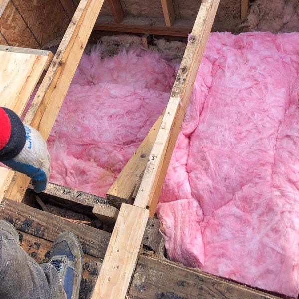 - PROJECT NOTES: New batt insulation was installed to replace attic insulation affected by mold which was in part caused by an ongoing roof leak. The damaged sections of roof deck were repaired using CDX plywood.
