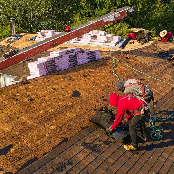 - JOB NOTES: New CDX plywood was installed in areas that needed roof deck repairs like the low slope roof section that had been leaking as well as the decking surrounding a bathroom vent that showed signs of water damage. New fascia boards were installed in areas where the fascia had signs of rot. Duration Designer shingles were installed over Titanium X-30 underlayment. PVC membrane was installed on the low slope roof in the back of the home. New gutters and downspouts completed the project.