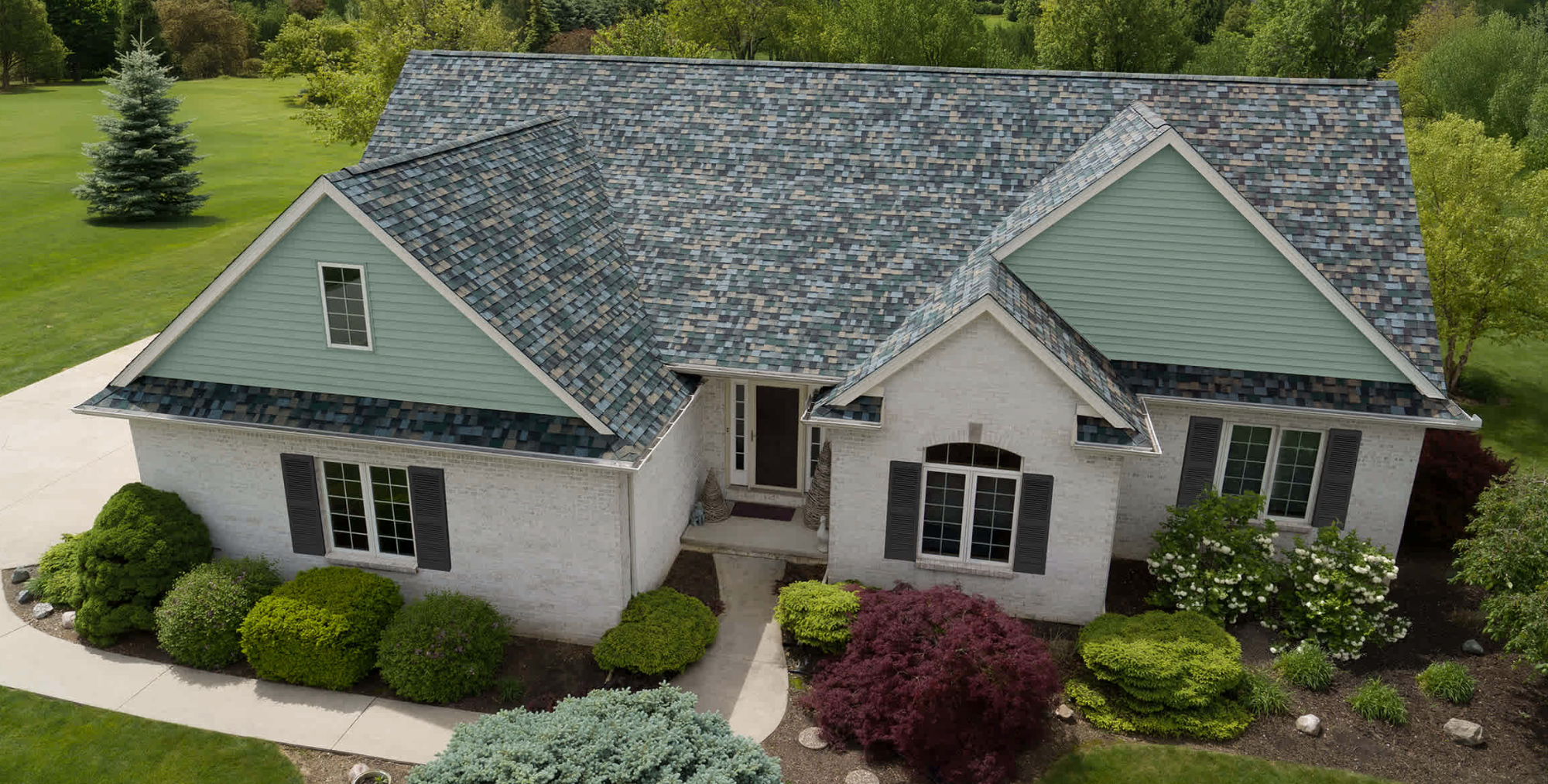 A roof makes up nearly 40% of a home’s exterior, which means choosing the right shingle color can transform your curb appeal. Evergreen Mist shingles are designed to pair beautifully with white, cream, beige, taupe, navy, and even bold black trims. Whether you want your roof to serve as a subtle backdrop or a standout feature, Evergreen Mist offers balance and sophistication.