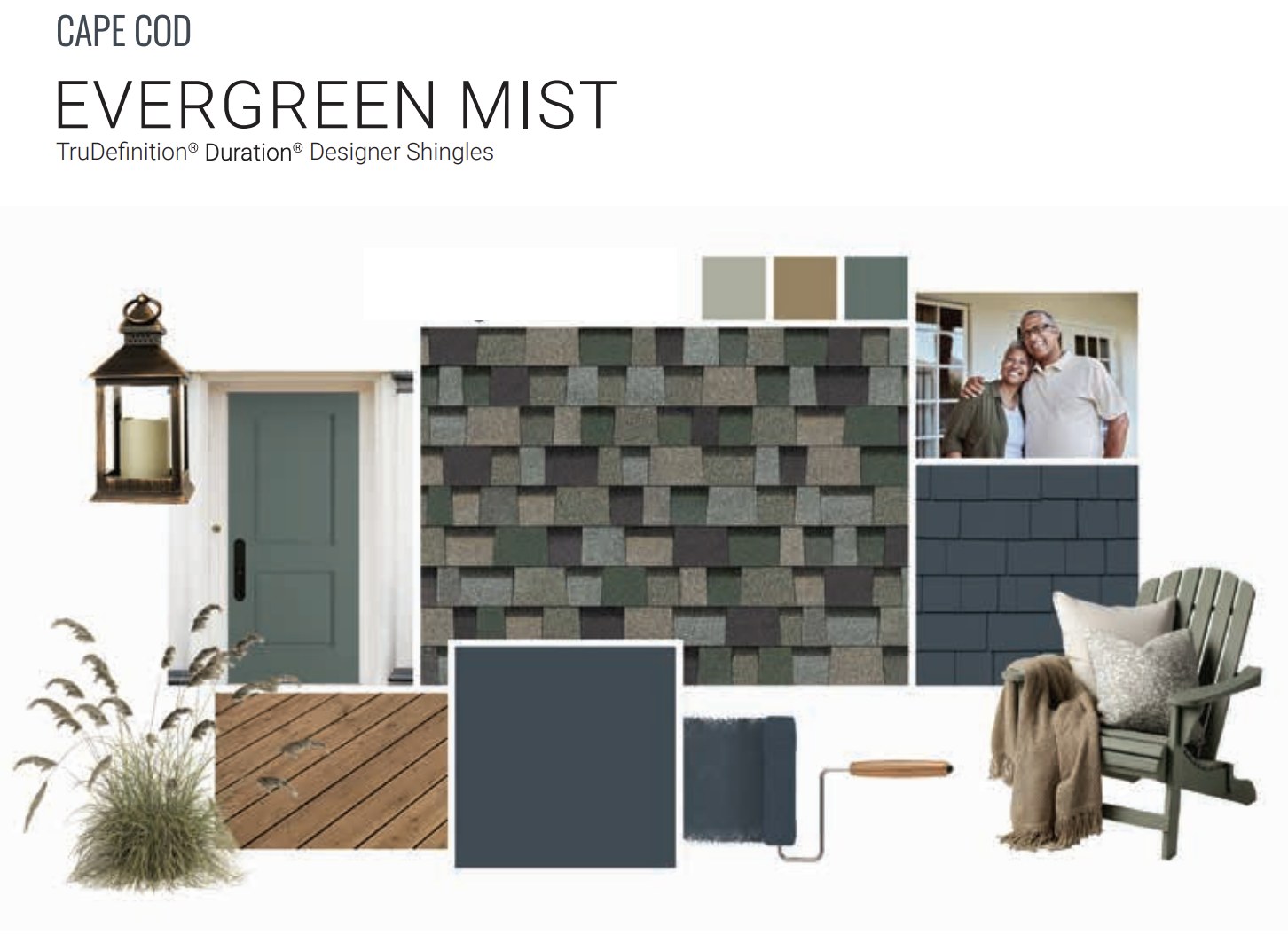 The 2026 Shingle Color of the Year, Evergreen Mist, evokes the serene charm of misty mornings in a lush garden. This vibrant palette brings color to life with rich greens and blues, and earthy tans and gray-browns selected by the Owens Corning design team to reflect the beauty of natural landscapes. The result is a versatile shingle color that blends seamlessly with its surroundings while standing out with bold, distinctive character.