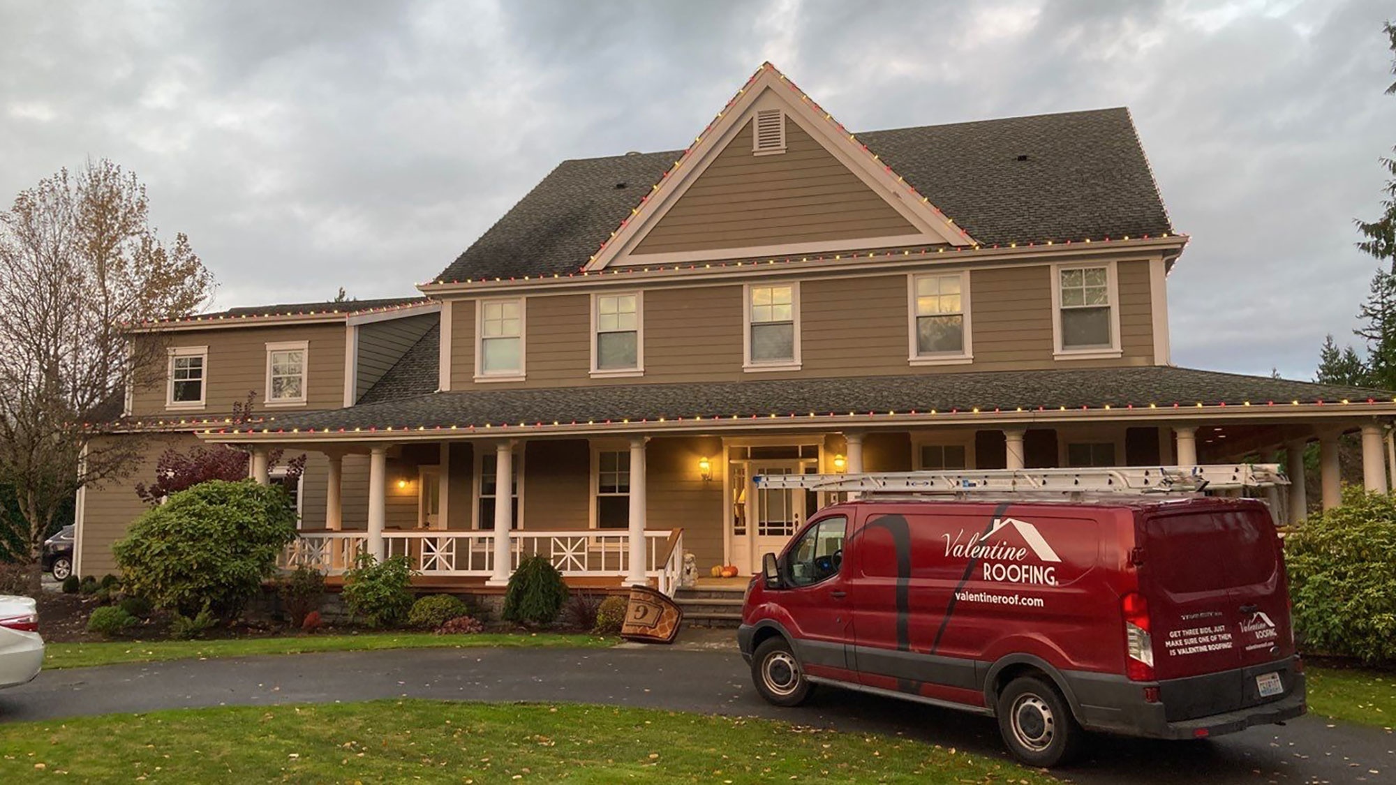 This year, we’re proud to be decorating homes throughout King, Pierce, Skagit, Snohomish, Kitsap, Thurston, and Island Counties. From cozy neighborhoods to waterfront homes, Valentine Roofing is helping families celebrate the season in style.