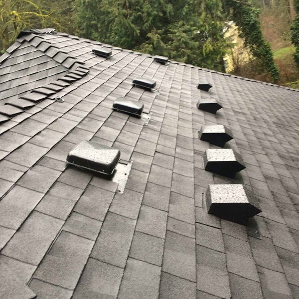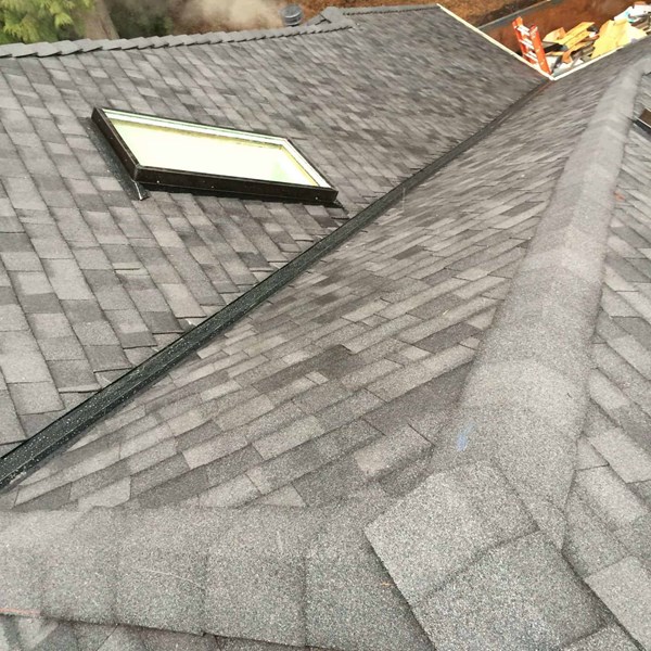 We finished this beautiful new composite roof yesterday afternoon on Bainbridge Island. Our customer's previous roof was over 20 years old and had some leaks. He decided to install a new CertainTeed Landmark Premium roof in Max Def Moire Black. The photos below show some of the features of the Valentine Signature Look.