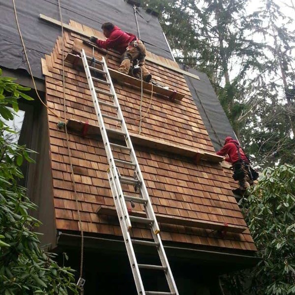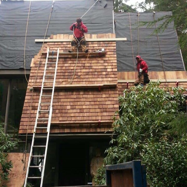 Last week one of our crews installed a beautiful new cedar roof on Bainbridge Island. Our customer chose to go with 18? CAA cedar shingles. As you can see, the steep pitch was a real challenge but our team performed brilliantly and with a smile. This roof was a true testament to our crew’s craftsmanship.