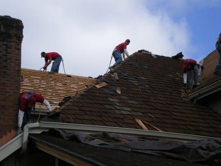 Here are some pictures of the early stages of the process. We are tearing of the cedar shake roof. Then you can see the skip sheeting and the attic in between the skips. We install two layers of heavy-duty felt paper then we will install the shingles on top. This sort of project will take us 5-7 days.