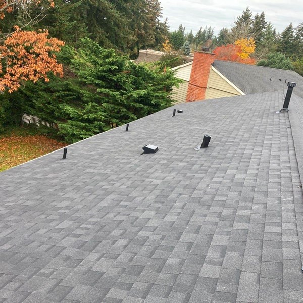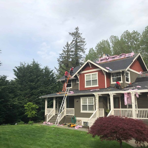 When installing or repairing a roof in cold weather, it's best to use materials that are designed specifically to handle extremely cold temperatures and moisture during roof installations. The cold will often cause composition shingles to lose flexibility and become harder to work with. Roof shingles can split and crack among other things during roof installations under extremely cold temperatures. When roof shingles become “brittle”, nails can be overdriven through the layers of material. Nails should always be installed flush with the shingle for the cleanest possible look. Some tools used by roofers like compressors and nail guns will also lose some efficiency in cooler temperatures. The sealant that adheres and “tabs” almost every composite shingle together typically needs warmer temperatures to activate properly and bond together. Without the sealant properly adhering, roof shingles can become dislodged from the roof or blown off entirely. Your roofing contractor should be knowledgeable of the manufacturer’s requirements for installing the shingle properly and efficiently. The Duration Flex line by Owens Corning offers superior protection against the elements and is designed specifically for cold-weather installations here in Seattle and the Pacific Northwest region. Flex roof shingles are made with a proprietary blend of SBS polymer modified asphalt, giving them a rubberizing effect which allows them to be more pliable and flexible during installation. Flex shingles have the highest possible impact rating at 4 which makes it an ideal shingle for intense storm conditions. The patented Surenail Technology, wind resistance, adhesive power, and triple-layer protection truly set the Flex roof shingle apart from other competitive shingles. SureNail and Tru-Bond technology provide exceptional grip and wind resistance of up to 130mph, covering most Seattle area storm conditions. The highly visible SureNail woven fabric strip embedded into each shingle and a 200% wider common bond area enables roofers to accurately and efficiently install roofs, even in adverse weather conditions.