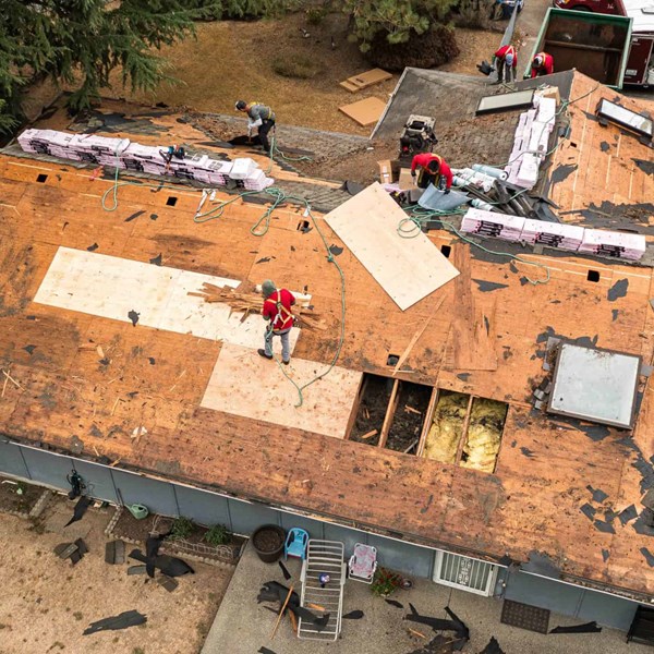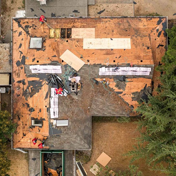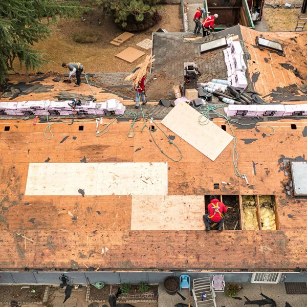 Once the old roofing material was removed, the crew set to work inspecting Dawn's plywood. Knowing the roof had an active leak, the crew looked for areas that were damaged by water penetration. Identifying plywood that was splitting and separating the crew removed the affected plywood and replaced it with new CDX plywood. This will give the new roofing system a sturdy, solid surface for exceptional roofing installation strength.