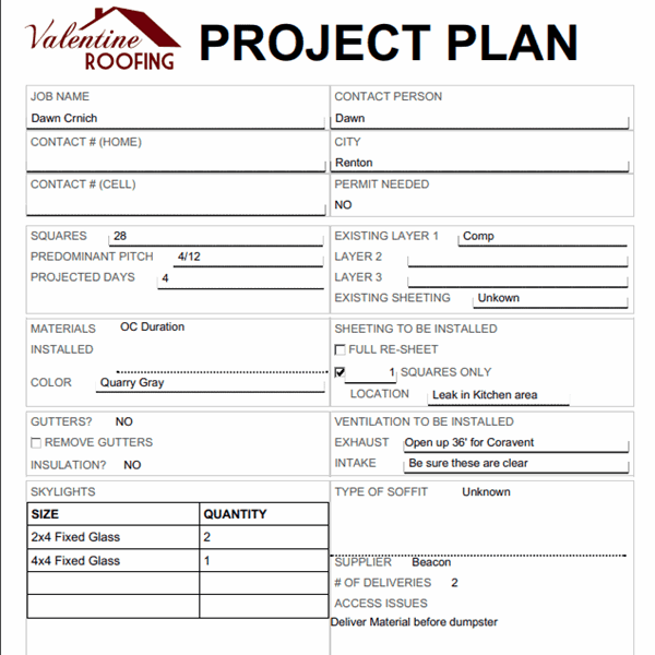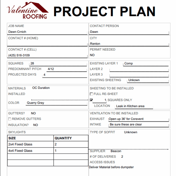 Dawn's Experience Manager, Aubrey, went through the project plan with Dawn, including the anticipated update to her existing RVO attic exhaust system. The roofing crew will be replacing them with a sleek ridge vent system. With the project kick-off scheduled for August 30th, Aubrey let Dawn know she will be keeping her updated with the impending logistics of her project!