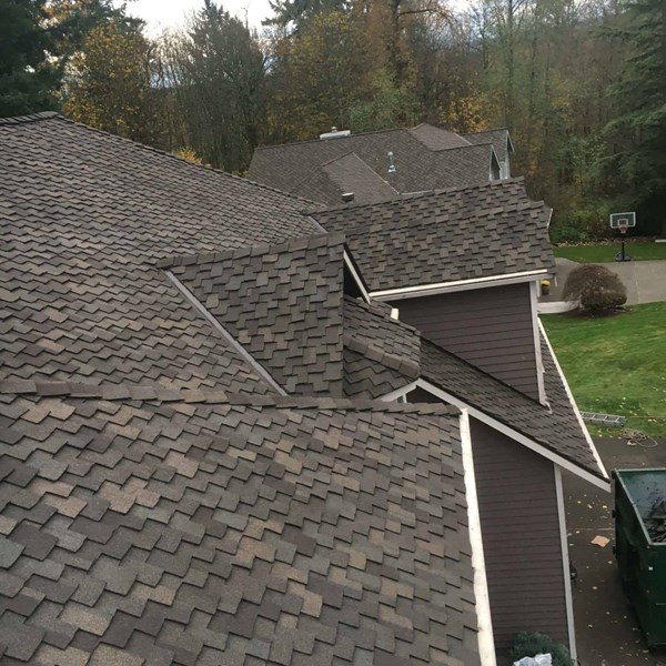 This beautiful roof was installed last week in Federal Way. Our customer had a previous cedar shake roof that he wanted to replace with architectural composite shingles. He chose to have a CertainTeed Presidential TL roof installed in the color Autumn Blend. The composite roof turned out great and our customer was thrilled with the results.