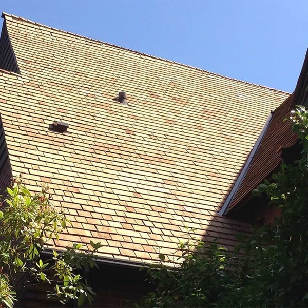 We love working on historic Seattle homes and understand that preserving the classic look of these homes is very important to our customers. We created these custom cedar gutter edges to give a curved swooping look (also called Asian detail). Instead of the standard metal flashings, our customer chose solid copper flashings. These custom details along with a British style cedar shingle roof (different from cedar shake) gives the home the vintage Seattle look. Valentine Roofing is accustomed to working on historical Seattle homes in old Seattle neighborhoods.