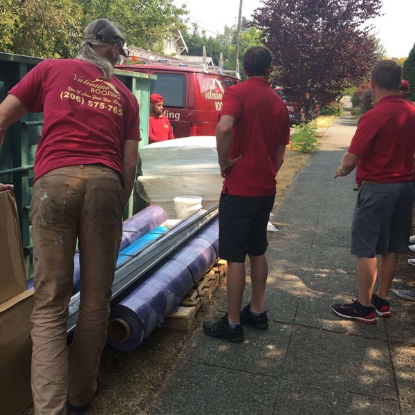 This week's bi-weekly sales meeting took place at one of our active jobsites. Our sales reps received additional training on how to estimate flat and low-slope roofs. The on-site crew leader and our quality control manager lead the meeting.