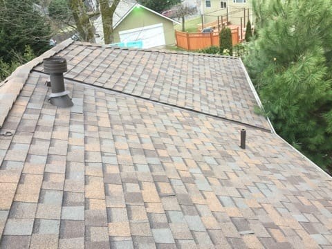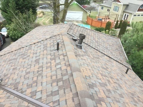 Last week we completed this composite roof replacement in Kenmore. Our customer previously had a shake roof that was over 20 years old. She chose to change her shake roof with a CertainTeed Landmark Premium in Heather Blend. As with all of our roofs, it featured the Valentine Signature look. This means clean and straight lines, finished detail work and colored flashings. When the roof is complete the only thing we leave behind is a beautiful roof and a happy customer.