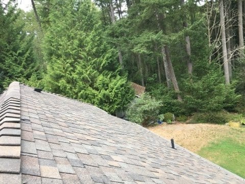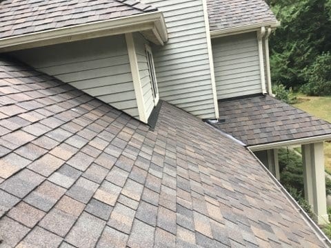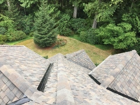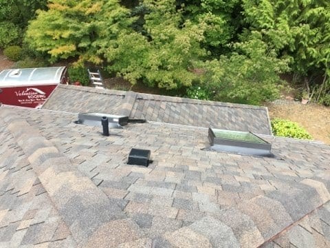 We recently finished a wood shake to composition shingle roof project in Kitsap county. To keep the look of wood shake the customer chose the CertainTeed Landmark TL shingle with Moutain Ridge shingles. CDX plywood was installed over the existing skip sheeting to create a solid roof deck perfect for shingle installation. New skylights and an updated balanced ventilation plan, which included a new cor-a-vent ridge vent system, were also part of the project plan. Valentine Roofing will work through all considerations when changing roof material so that your roof gets the update it deserves!