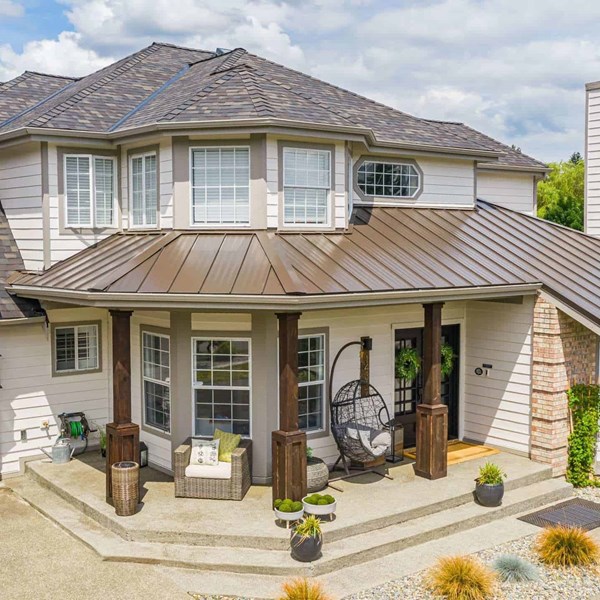 Our team just completed a beautiful new composite/metal roof combo roof in Orting, WA for the Gleason family. When they purchased their home several years back, the original cedar shake roof was over 20 years old and in need of an upgrade. They recently decided to move forward with their roof replacement and rather than simply going with the most traditional option, they opted to make a bold statement by choosing a composite roof and metal roof combination. Adding metal accents over a home’s porch, dormers, or other key areas is a great way to add a unique accent that will make a home stand out from the rest. Pairing the classic look of a composite shingle with the modern flare of metal panels makes for a stunning combination that’s becoming increasingly popular here in the Northwest.