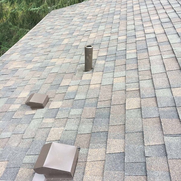 This new composition roof was completed last week in Edmonds. Our customer's previous roof was over twenty years old and in bad shape. He chose to put on a new CertainTeed Landmark TL roof in Max Def Shenandoah. There were previous ventilation issues in the upstairs bathrooms which were addressed during install with additional roof vents. The new roof looks great and we have another happy Valentine customer.