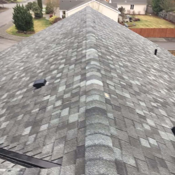 We just finished a new roof in Orting for one of our customers. The old roof was only 16 years old but was leaking when she called for her free roofing estimate. We were able to get her onto our leak stop program to secure the leak until we could safely install her new roof. We installed new metal flashing, straight line chimney counter flashing, a superior watertight underlayment, and the shingle color of her choice. from every bend of her drip edge to every expertly installed shingle, this home is the epitome of the Valentine Signature look. The signature look ensures every house is as beautiful and well crafted as the next, making it easy to distinguish a Valentine Roof from all the rest.