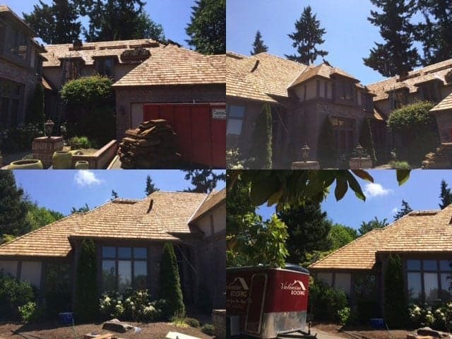 Here are some pictures of a cedar shake roof we are finishing up installing in Bellevue. This homeowner chose the 5/8? Premium Tapersawn shake. These are Western Red Cedar Shakes by Imperial. Tapersawn shakes are sawn on both sides and have a relatively smooth surface. They appear thicker than a typical shingle which gives them a thicker shadowline. The Tapersawn shakes come in thicknesses of either 5/8?, 7/8? or 1?.
