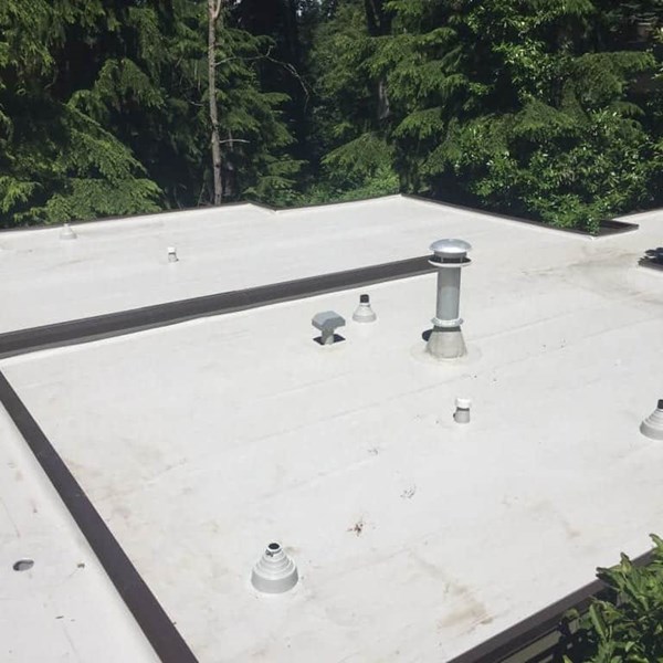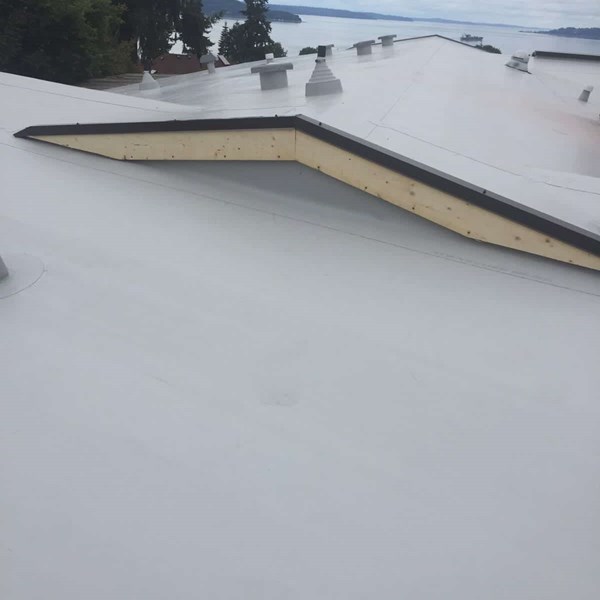 PVC (Polyvinyl Chloride) is hands down the best low slope and flat roofing material on the market today. Engineered to be flexible, strong and UV reflective, PVC roofing can easily last 20 years here in the Pacific Northwest. The flexibility of PVC roofing makes it easier for roofers to install the product around roof penetrations like vents, chimneys and skylights. Valentine Roofing employs experienced PVC crews that receive ongoing training in installation and product knowledge. Some contractors will offer other products such as TPO, Torch Down, Hot Tar and EPDM for low slope and flat roofs. These other products can be dangerous to install, using open flames or super heated material. While they may seem appealing when presented with the upfront cost these products often last half as long as PVC typically requiring expensive maintenance or repairs.