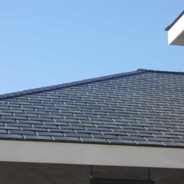 The only downside is the price. It costs quite a bit more than composite or cedar. Most of that is the product cost but some is also the labor it takes to install it. Very labor intensive roofing material. This roof is on a new construction house so the photos will reflect that.