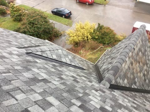 Earlier this week we completed reroofing this brick home in Seattle. The previous roof was over 20 years old and was ready to be replaced. She chose to replace her roof with CertainTeed Landmark Pro. The homeowner decided to change from a brown colored roof to a granite grey color with the new composite roof.