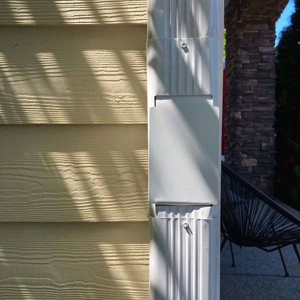 Our customer in Marysville, WA needed her new gutters to be easy to maintain. Her old gutters often logged after a storm, with leaves and other debris from surrounding trees. After learning about gutter downspout clean-out boxes as an option, our customer chose to include them in her new gutter system. The access door on the downspout allows for easy clean out of leaves, needles, pine cones, and other debris that often clog downspouts. Now, with an easy way to keep her gutter system working at optimal performance, our customer is ready for the next Northwest autumn.