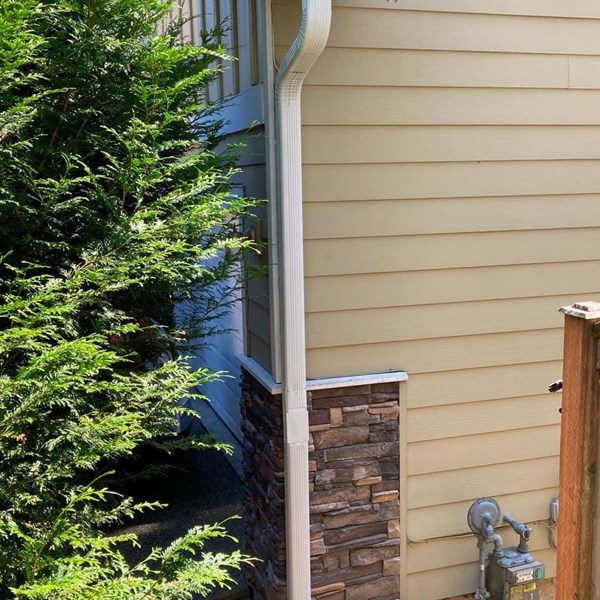 Our customer in Snohomish County needed to upgrade her gutter system to handle the heavy rainfall she gets at her home. Updating her gutters to a new 6k aluminum gutter system, featuring 3 x 4 downspouts, gave this customer the protection her home needed. With 40% more water capacity this system is designed for areas with heavy rainfall. The larger downspout allows more debris to pass through the system without clogging, great for areas with tree cover, like this home in North Puget Sound.