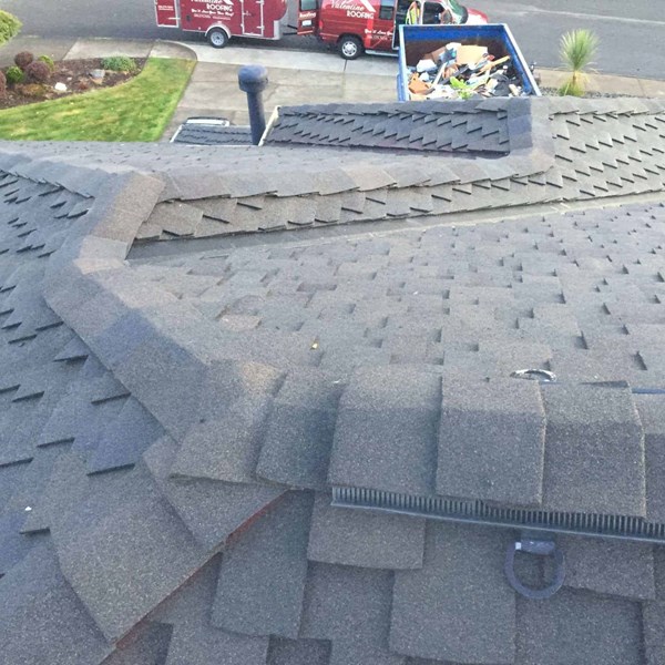 This new composite roof was completed late last week. The homeowners had a previous cedar shake roof that needed to be replaced. The Tacoma roof replacement needed to meet the HOA requirements for their neighborhood. Our sales rep looked into their options and presented them to the homeowner. After looking at their different options they chose to go with CertainTeed Presidential TL in the color Shadow Gray.