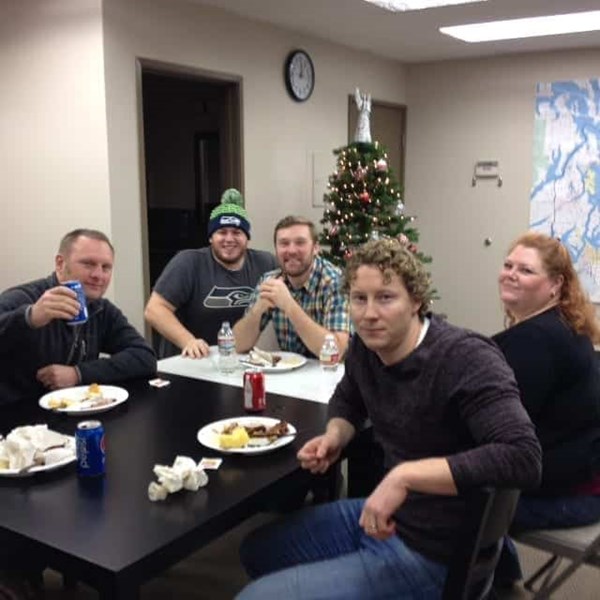 On Monday, December 22nd we had our first ever company Christmas party. Everyone from our roofers, sales team and office staff were in attendance. We all had a great time visiting with each other and enjoying some great food from Famous Dave’s. Thank you to all of our customers, vendors and employees for making 2014 such a success!