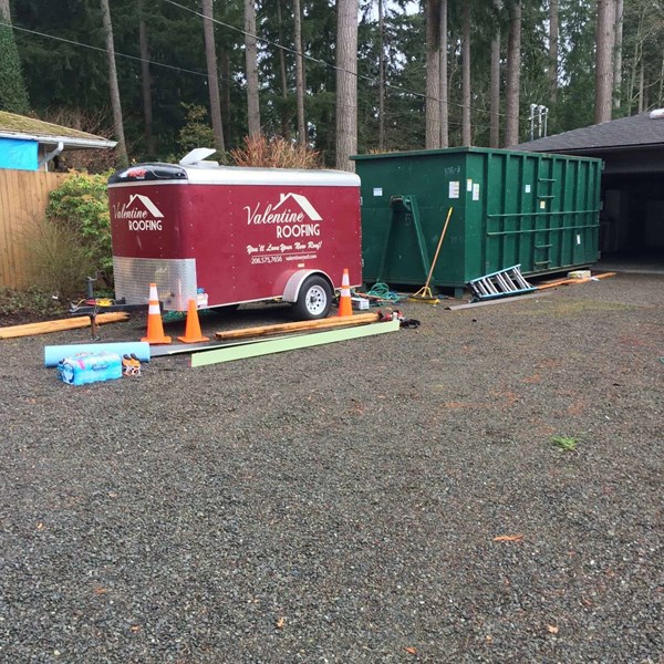 Another important step that happens is to ensure a waste container is in place for the crew to use. This container is often placed in the driveway or sometimes on the street for old roofing material to be placed into. Other material and tools may also be staged in the driveway for ease of access and so that the crew installing the roof has a specified work area. Because the driveway is often needed throughout the project your project manager will most likely request that is be kept clear for the duration of the project.