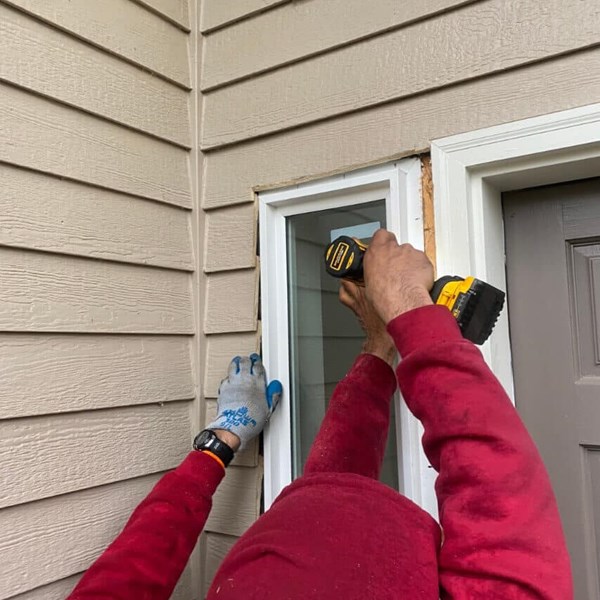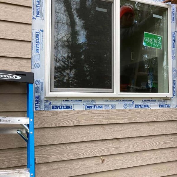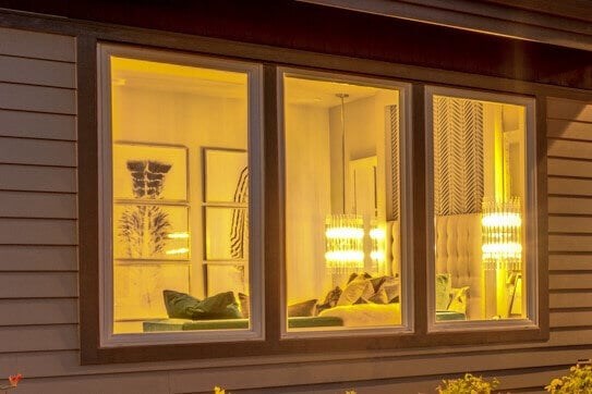 First, choose your frame color, decide on privacy options, and choose a grid style! Our project began with delivery straight to the customer’s garage. We staged our windows in a safe place so they would be on-site and ready to go when our crew arrived for the project kick-off. Delivering the windows in this way allows the crew to quickly and efficiently ensure all of the windows are on-site and in the correct size before work begins. Once the project kick-off took place, and the crew checked the window specs for each new window they set to work replacing the old, worn windows, with new dual-paned vinyl windows. We opt to install flanged vinyl windows for better durability. Our crew first cuts any siding back as needed, or removes existing exterior trim to remove the old window, including the old flange. Once the old window is out and the rough opening is prepared with sealant, the new window will be fit into place and then leveled and squared using composite shims as necessary. This step is important to ensure the window won't sag over time, allowing for optimum performance and operability. Once the window is in place it is secured using screws rather than nails.